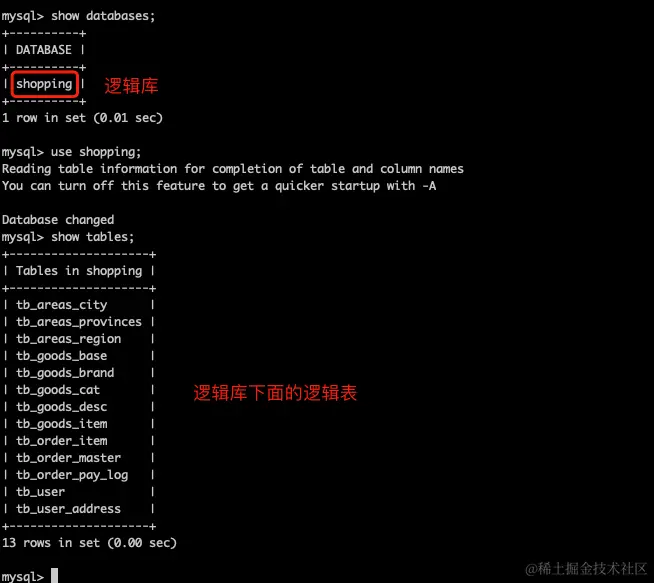 查看逻辑库和逻辑表