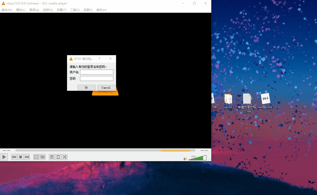 vlc中,如果输入的用户名和密码无法通过验证,则会重新弹出验证框(且用户名不用重新输入),直至输入正确或取消输入(效果看开头)。所以我们也加入RTSP地址合法性的检查等操作: