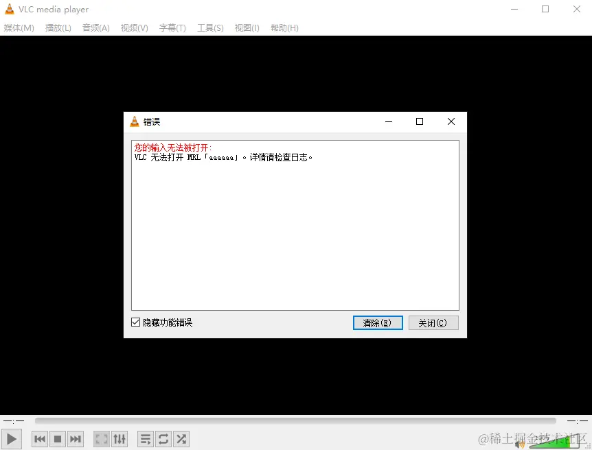 vlc在无法打开RTSP地址的时候会弹出错误窗口。