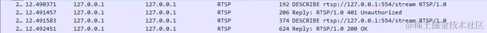 一般server会进行用户认证,如果未携带Authorization鉴权信息,或者认证失败,server会返回错误号为401的响应,client接收到401响应时,需要根据已知的用户鉴权信息,生成Authorization,再次发送DESCRIBE,如果认证成功,服务器返回携带有SDP的响应信息。