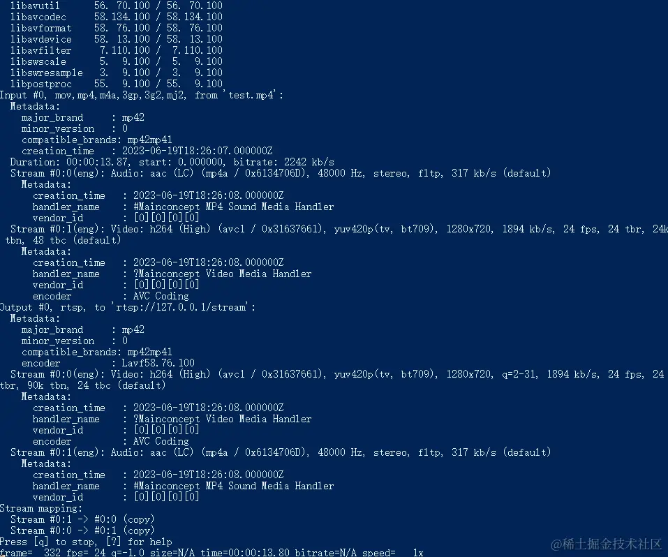 这次由于是RTSP流,并不能获取准确的duration。继续打印流相关的信息: