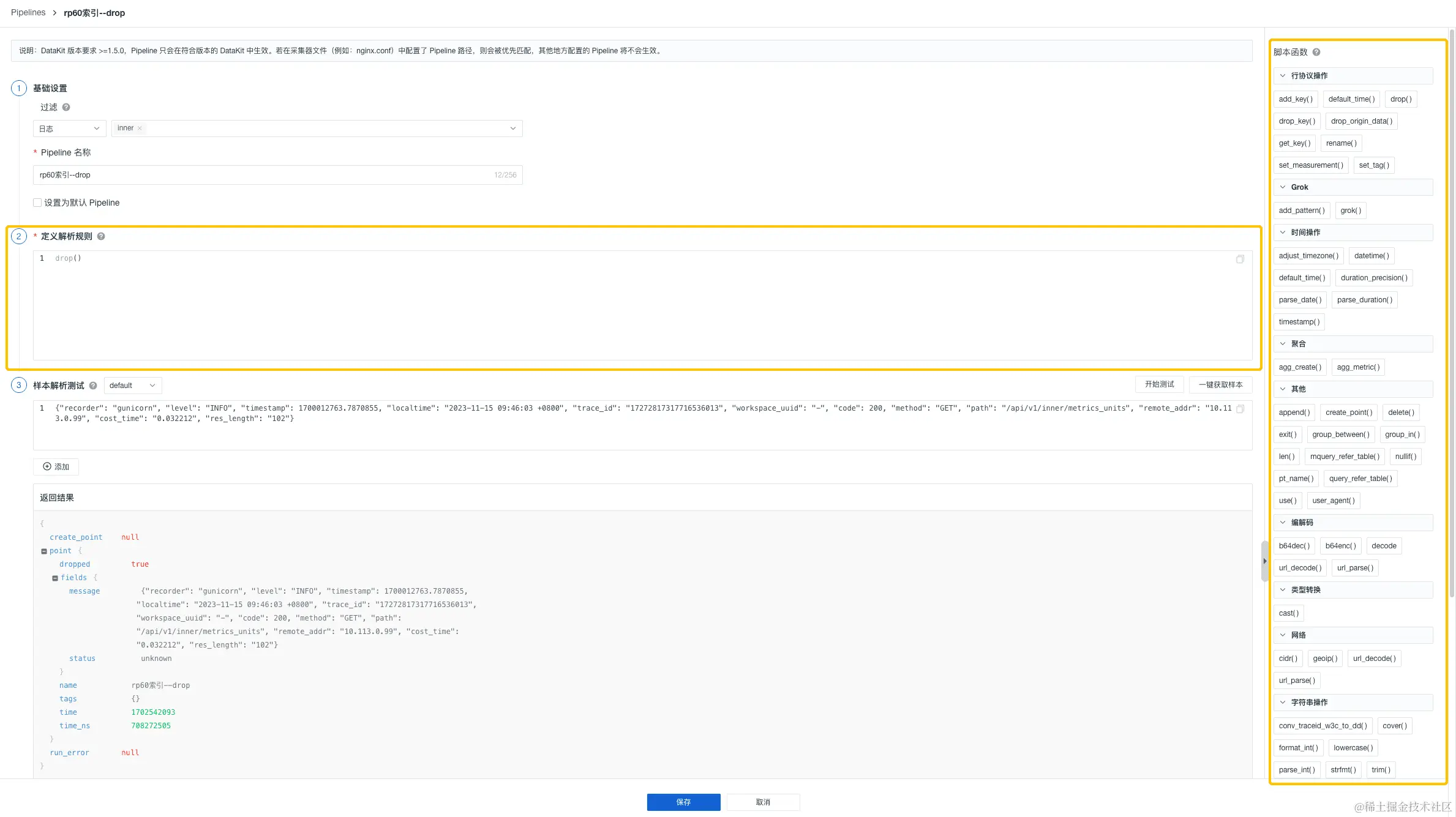 日志 Pipeline 使用示例