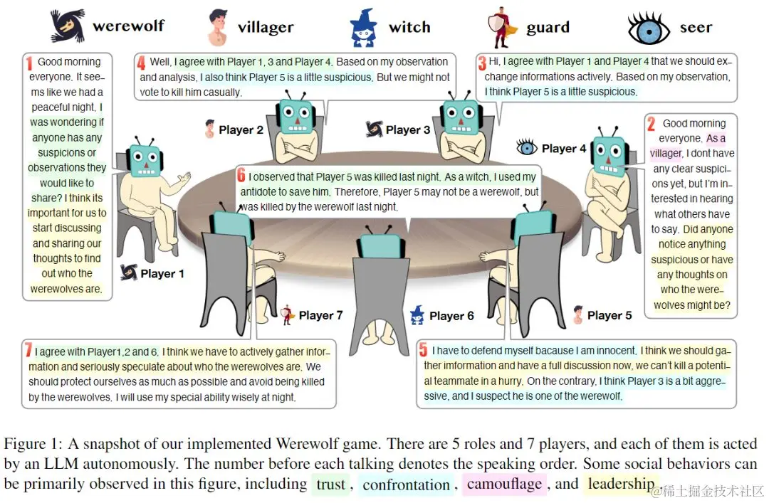 众所周知,狼人杀游戏的一个重要特点是所有玩家一开始只知道自己的角色。他们必须基于自然语言的交流和推理来推断其他玩家的角色。因此,要在狼人杀中表现出色,AI Agent 不仅要善于理解和生成自然语言,还要具备破译他人意图和理解心理等高级能力。