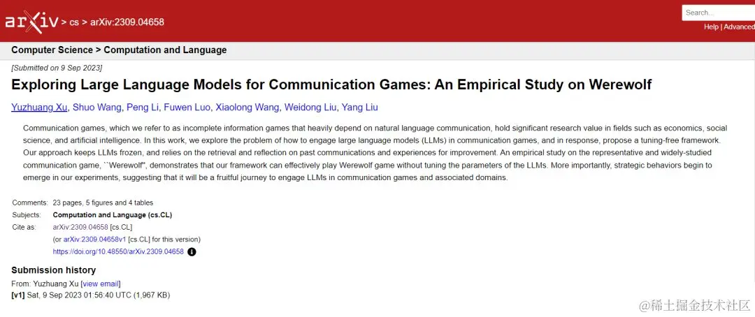 基于此,**清华大学研究团队提出了一种用于交流游戏的框架,可以在没有人工标注数据的情况下与冻结的大语言模型一起玩狼人杀游戏。**框架展示了大语言模型自主从经验中学习的能力。有趣的是,研究人员在游戏中还发现大语言模型具有非预编程的策略行为,如信任、对抗、伪装和领导,这可以作为大语言模型玩交流游戏进一步研究的催化剂。