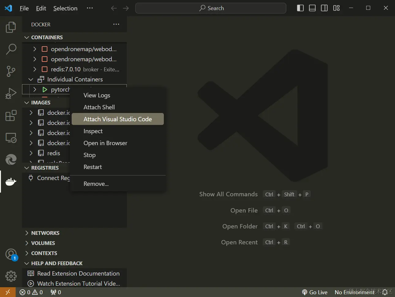 配合Vscode的Docker插件,我们可以直接进入Docker容器里面编程: