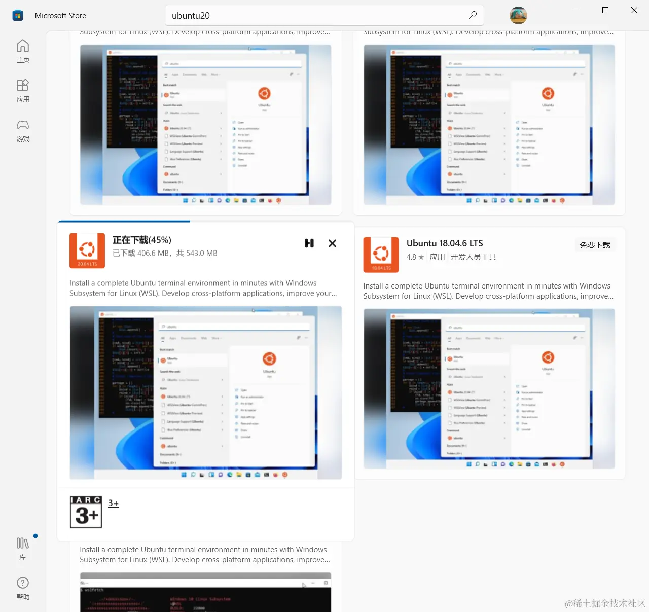 这下可以安装Linux咯,可以根据自己需要选择Ubuntu版本,打开微软商店下载即可