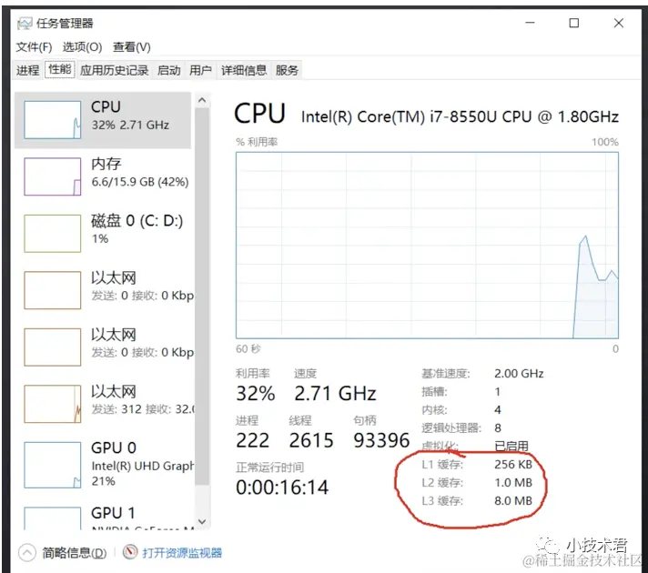 其中CPU 缓存在现在系统中为L1,L2,L3 缓存.