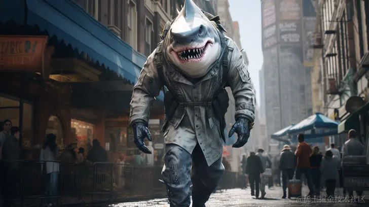 1. 可爱的大鲨鱼漫步城市街道