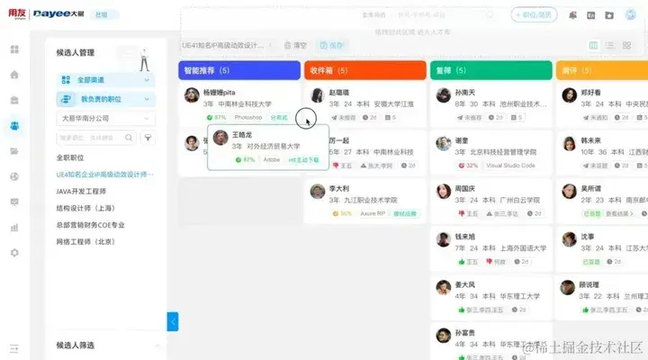 企业想要增进与人才的关系,首先离不开雇主对人才体验的极致关注。用友大易TRM持续精进体验管理,将招聘的每一个环节都从人才体验的角度进行重新思考和设计。例如其最新推出的招聘任务看板,颠覆传统的简历处理方式,将候选人简历变身为一个个任务卡片来推进提醒,帮助HR高效处理招聘任务的同时,确保候选人的应聘流程得以高速推进。同时,即使是暂时不合适的候选人,也会自动触发个性化的感谢信,这种积极的沟通和关注表明企业对候选人的重视,并有助于维护良好的候选人关系。