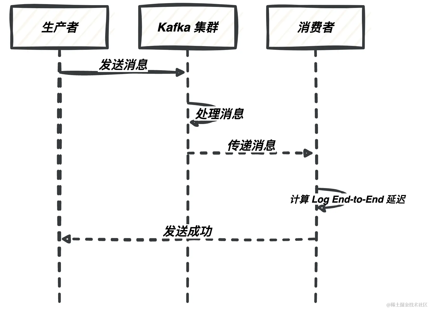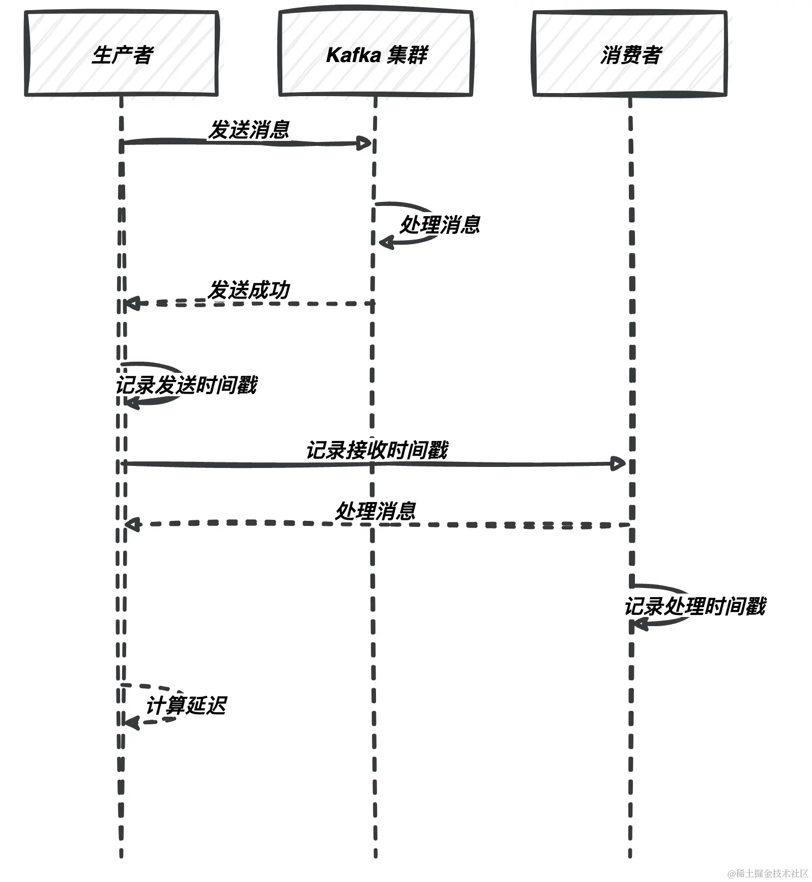 为了有效地管理 Kafka 消息延迟,首先需要能够度量它。下面是一些常见的延迟度量方式: