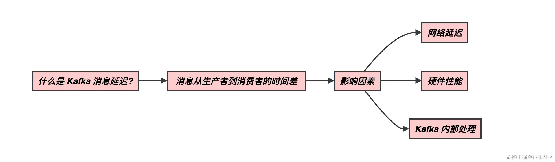 为了有效地管理和优化 Kafka 消息延迟,我们需要深入了解延迟可能来自哪些方面。下面是一些常见的延迟来源: