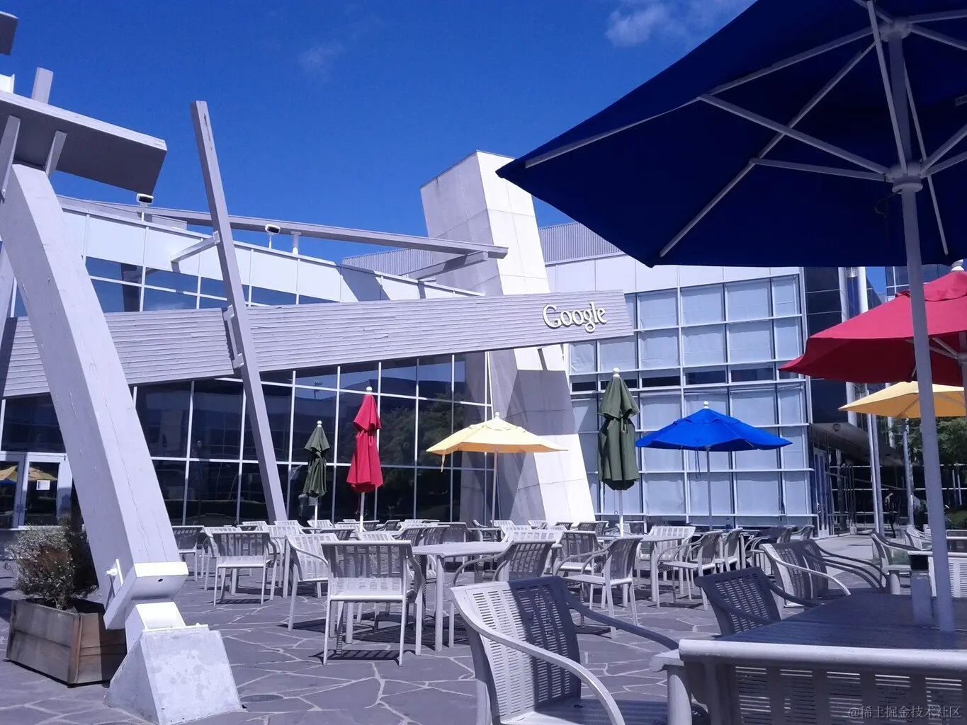 [2011 年,谷歌园区的 Charlie's patio。图像已被处理,移除了其中的人物]