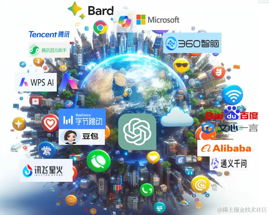 - ChatGPT:由OpenAI开发的大型语言模型,能够与人类进行逼真的对话。在2023年,ChatGPT依托的GPT 3.5升级到了GPT 4,GPT 4在生成文本、翻译语言、写不同类型的创意内容等方面有了大幅提升。