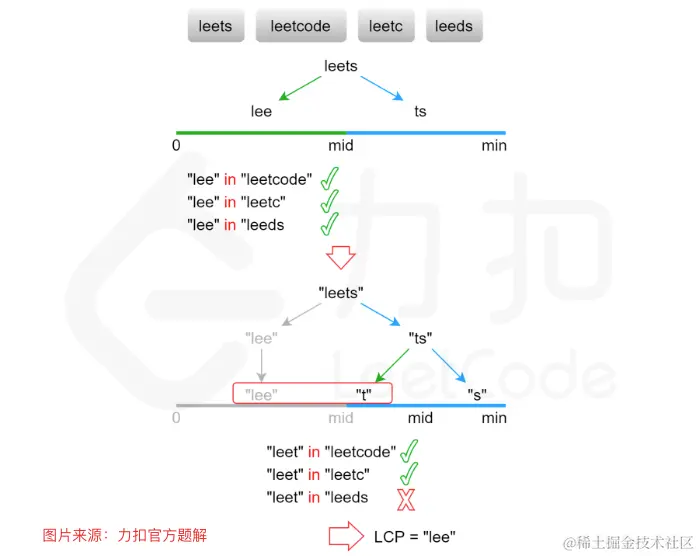 String lcpLeft = longestCommonPrefix(strs, start, mid);
