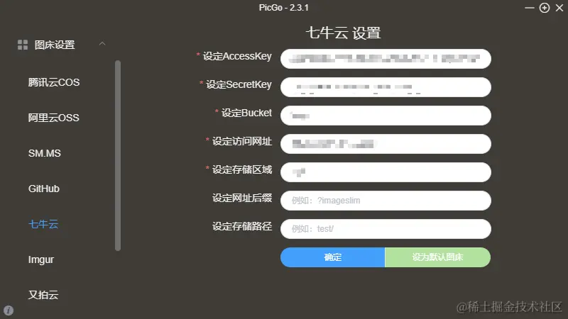 配置填写完成后,可以将其设置成默认图床。