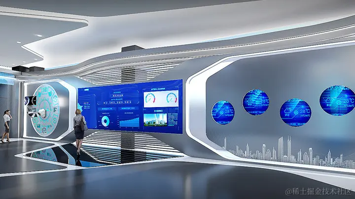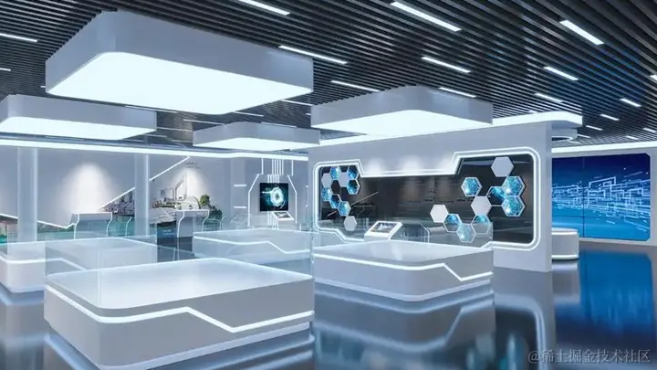 硬件渲染是一个直观的视觉部分,科技元素积累成山,包括但不限于展厅材料的选择。硬件渲染材料可分为:地面材料:常用的复合板、地毯、装饰布等。墙体材料:透明透明。科技博物馆一般选择透明和不透明的结合,在视觉交流中,主色调一般为大面积冷色,创造未来感和沉浸感。