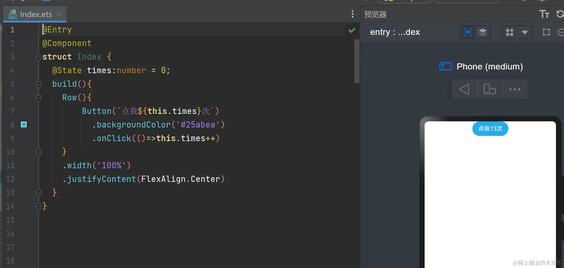 组件中,由@State装饰的变量是组件内部状态数据,当内部状态数据变化时,会调用所在组件的生成器方法进行界面刷新,因此组件会随着内部状态数据的变化而实时变化。