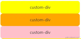 举个例子,我们通过:host将 custom-div 的背景色变量设置为orange,通过 :host()来分别选中类名为 a 的组件以及含有 pink 属性设置的组件,修改它们的背景色变量。