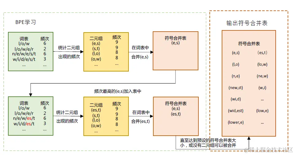 图4 BPE 模型中词元词表的计算过程