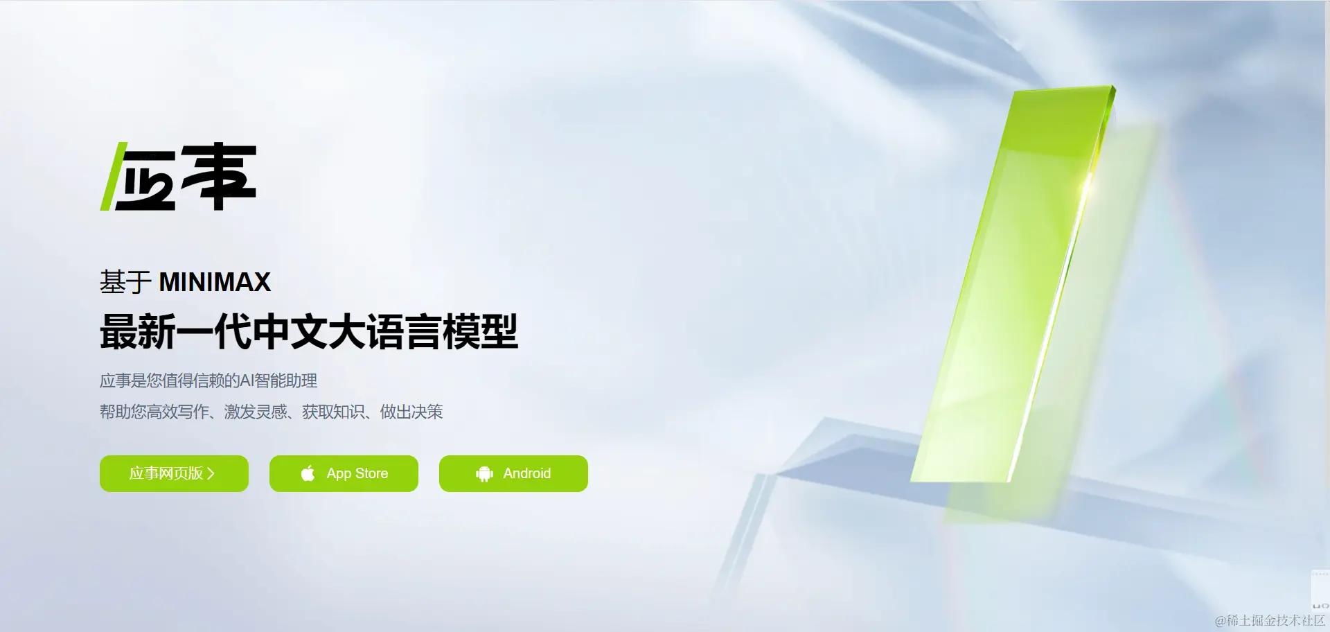 应事AI是基于MiniMax最新一代中文大语言模型的AI聊天机器人,产品前身是Inspo,现已通过备案并向社会开放。应事是您值得信赖的AI智能助理,可帮助高效写作、激发灵感、获取知识、做出决策。