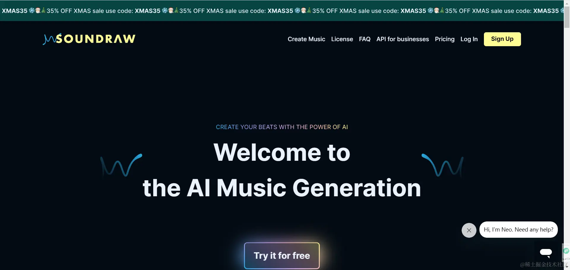 Soundraw是一个专为作者打造的AI音乐生成器,无需任音乐创作知识,几分钟内便可以创作出与你的内容完美匹配的歌曲,用户只需访间Soundraw,点击Create Music选项,然后选择相关标签生成音乐即可。