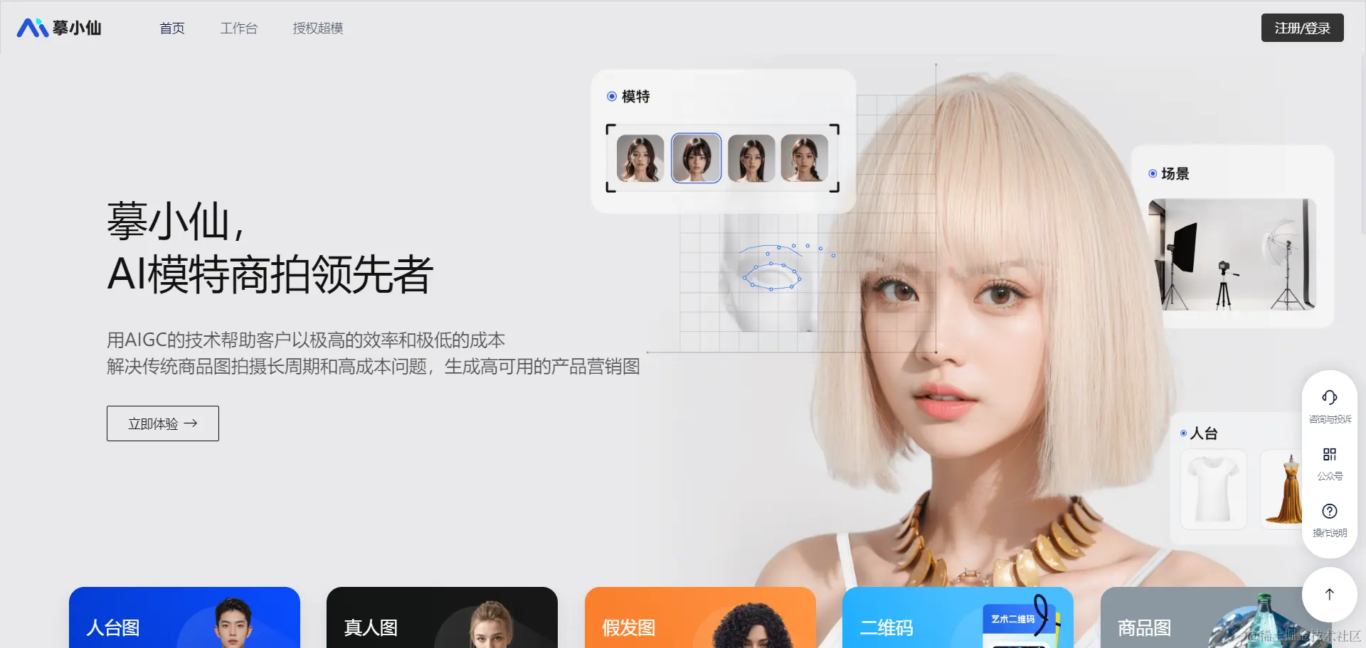 摹小仙,ai模特商拍工具,用AIGC的技术帮助客户以极高的效率和极低的成本解决传统商品、模特商拍周期长和高成本问题,一键快速生成高价值的产品营销图。