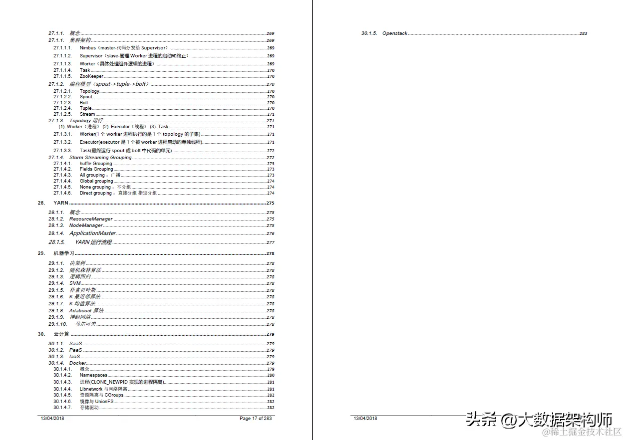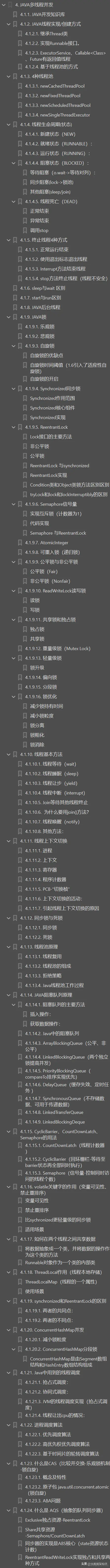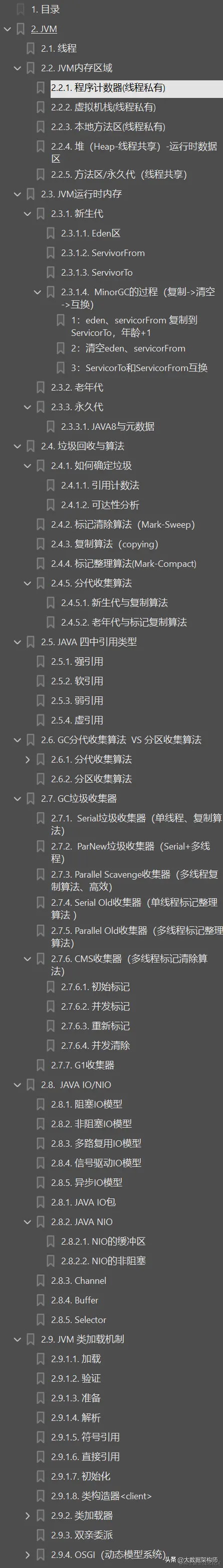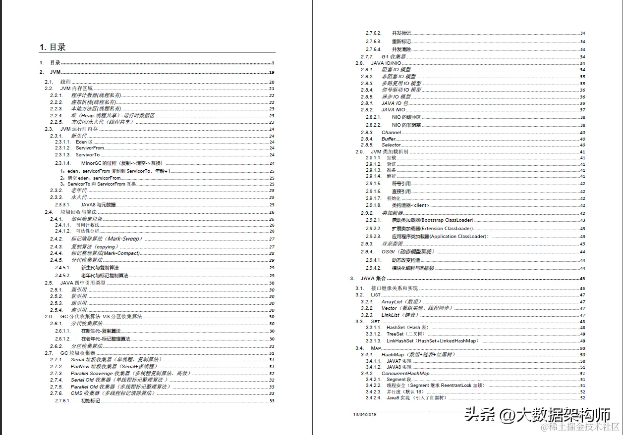 今天主要是想分享这份阿里P8的晋升手册。 简述一下这份文档说了那些技术栈:“JVM ==> JAVA集合 ==> Java多线程和并发 ==> JAVA基础 ==> Spring原理 ==> 微服务 ==> Netty与RPC ==> 网络 ==> 日志 ==> Zookeeper ==> kafka ==> RabbitMQ ==> Hbase ==> MongoDB ==> Cassandra ==> 设计模式 ==> 负载准衡 ==> 数据库 ==> 一致性算法 ==> Java算法 ==> 数据结构 ==> 加密算法 ==> 分布式缓存 ==> Hadop ==> Spark ==> Storm ==> YARN ==> 机器学习 ==> 云计算 ”