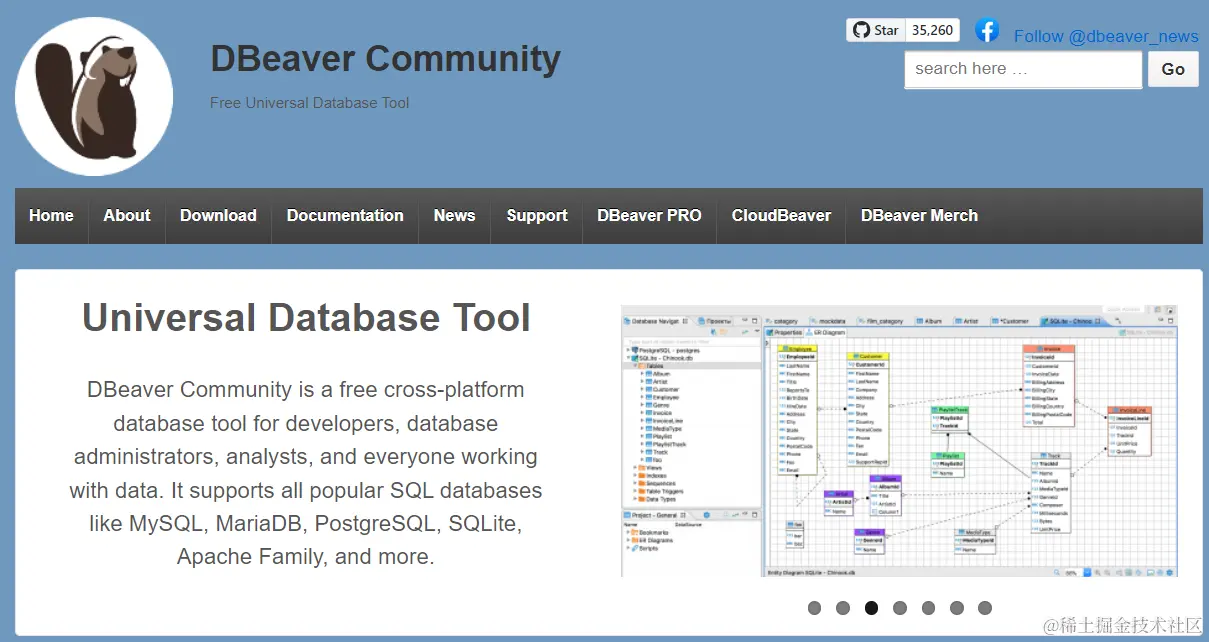 DBeaver 是一款免费和开源的通用数据库管理工具和 SQL 客户端,支持多种关系型数据库,包括 MySQL、PostgreSQL、Oracle、DB2、MSSQL、Sybase、MariaDB、SQLite、H2、HSQLDB、Derby、SAP HANA、Vertica、Snowflake、Amazon Redshift、Google Cloud Spanner 等。