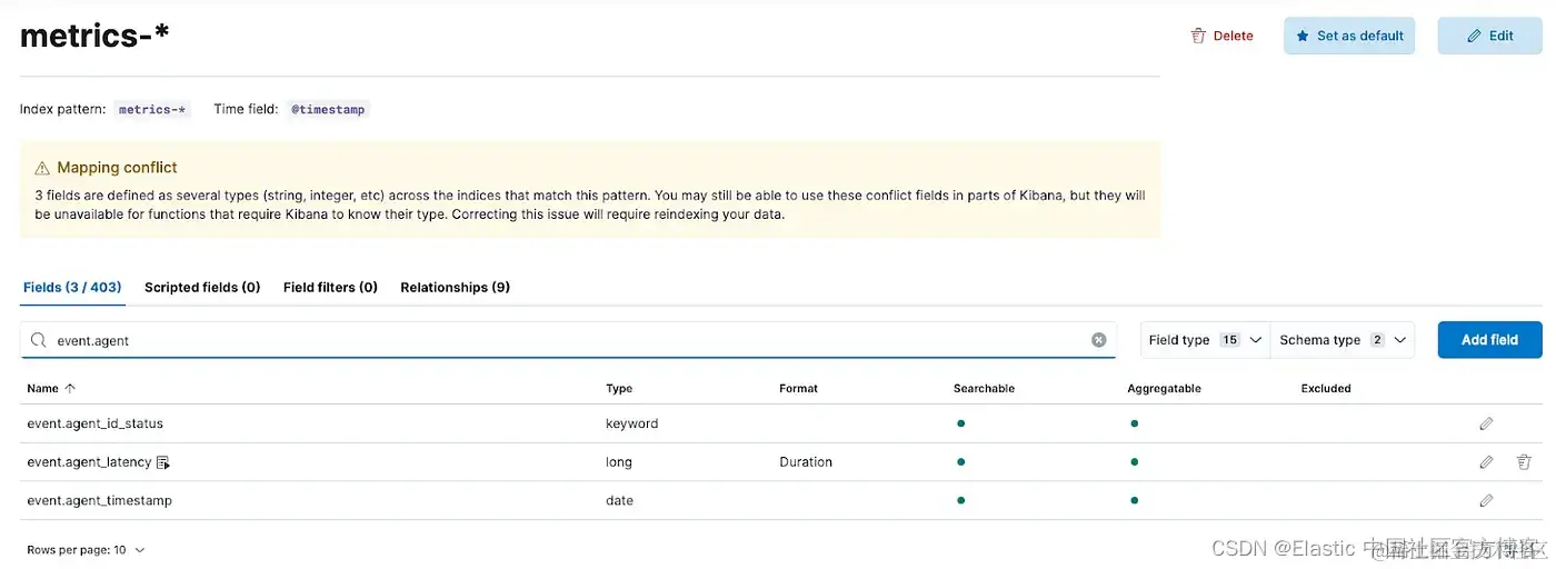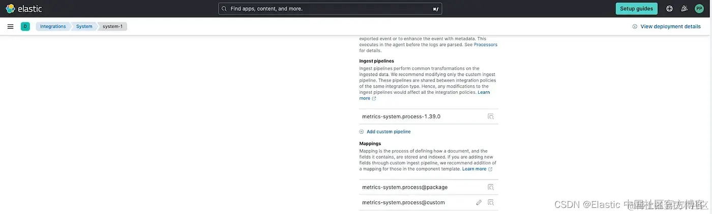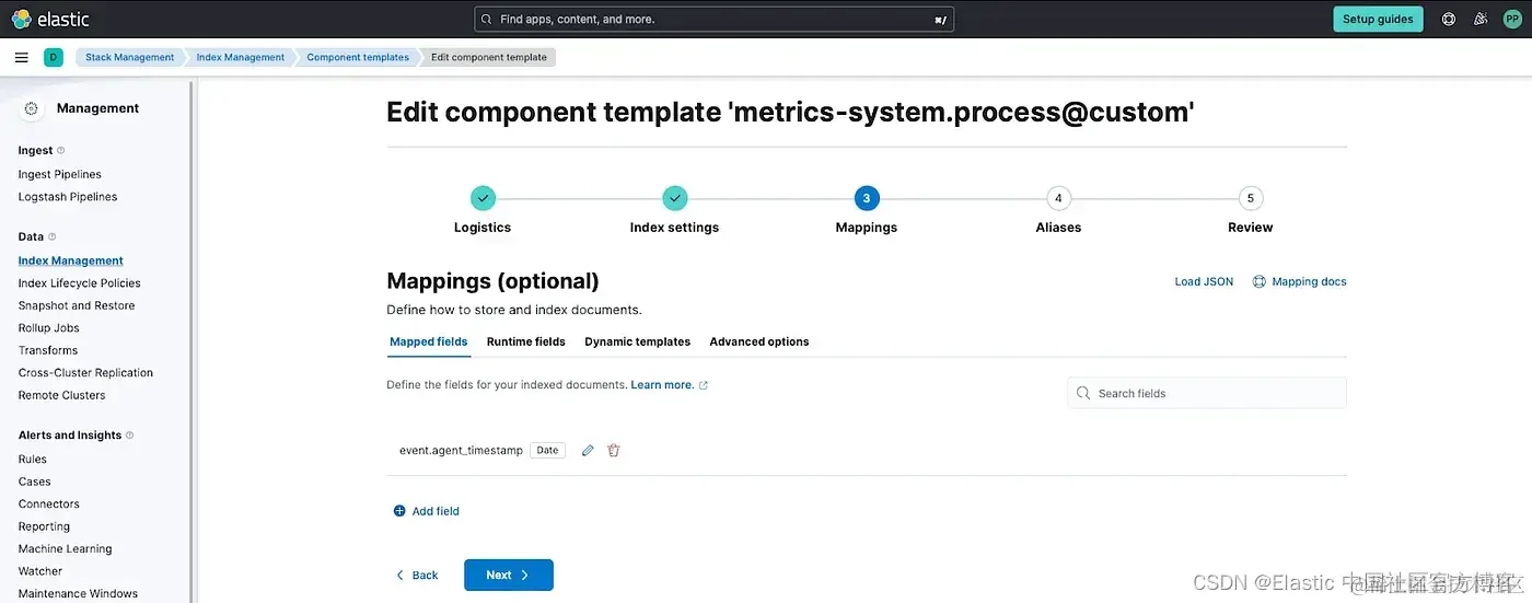 我们必须在映射 metrics-system.process@custom 组件模板中添加 event.agent_timestamp 字段。