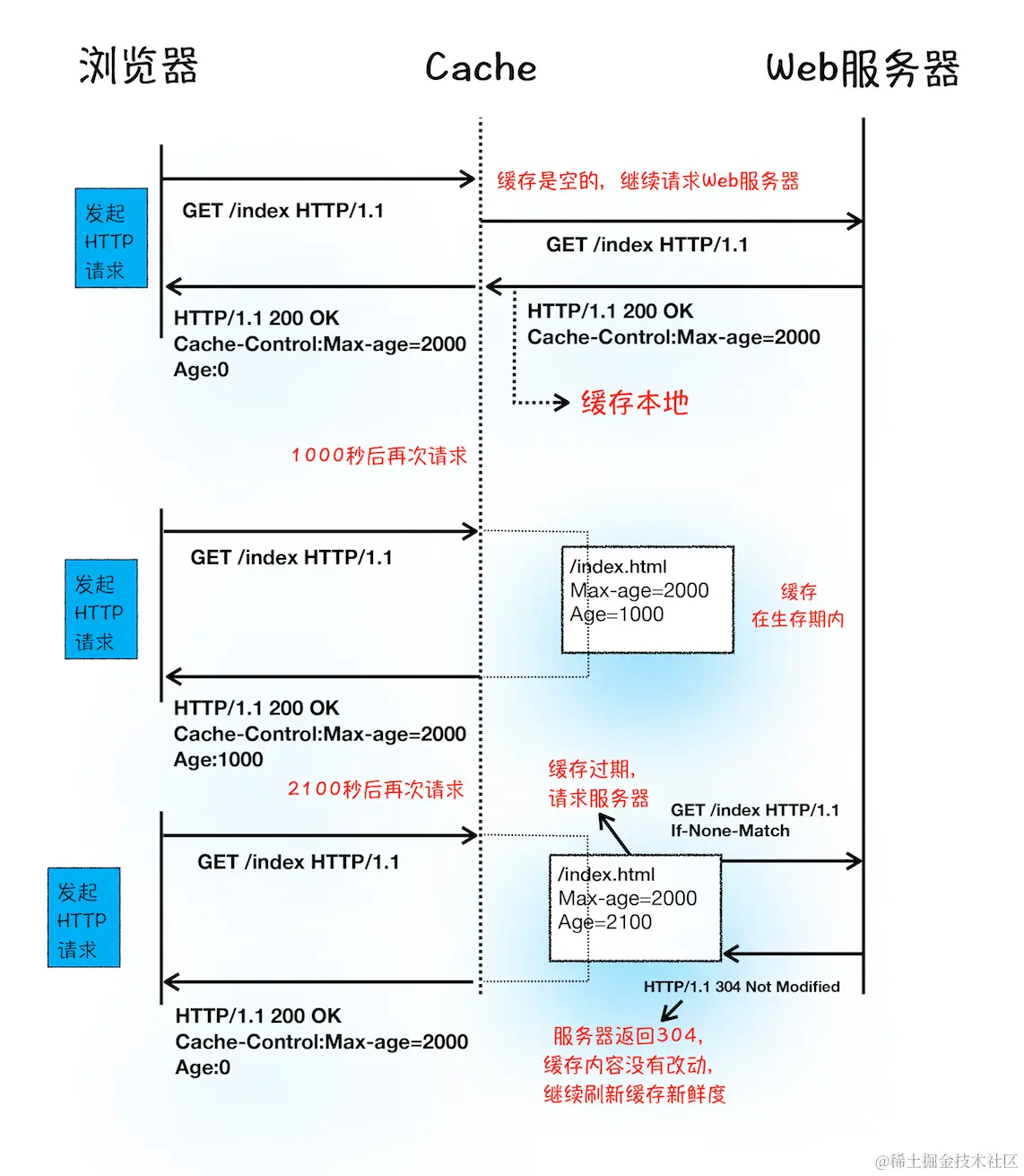 - 如果没有更新,就返回304状态码,相当于服务器告诉浏览器:“这个缓存可以继续使用,这次就不重复发送数据给你了。”