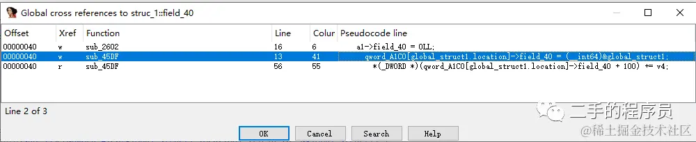 我们使用快捷键 CTRL + ALT + X,查看全局对 field_40 这个字段的交叉引用: