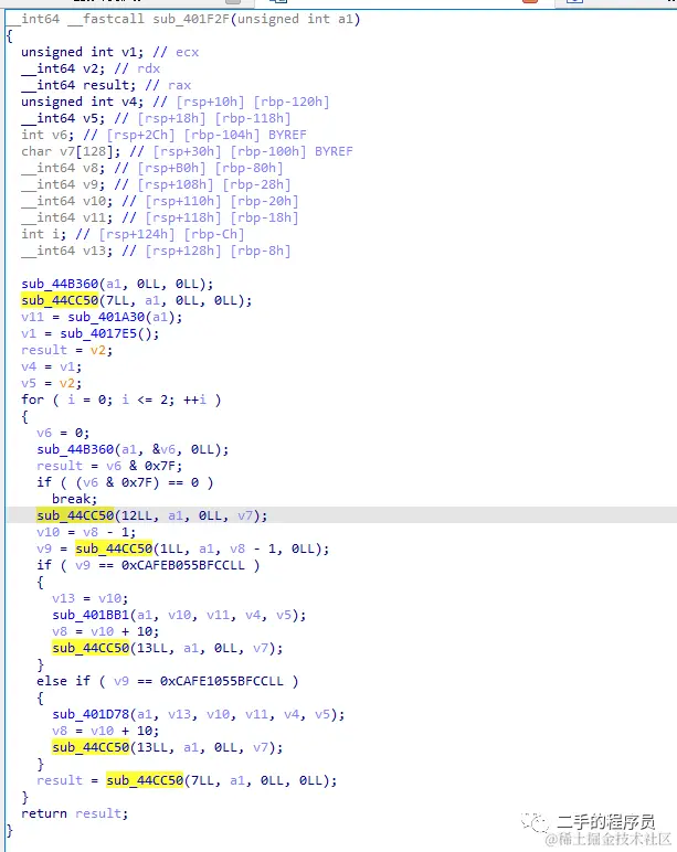 这下程序看起来就很像人写的了。同样的,这个函数的返回值也是没有用到的,所以我们可以继续优化代码,再综合程序的逻辑,给参数进行重命名,基本就可以完全还原源代码了: