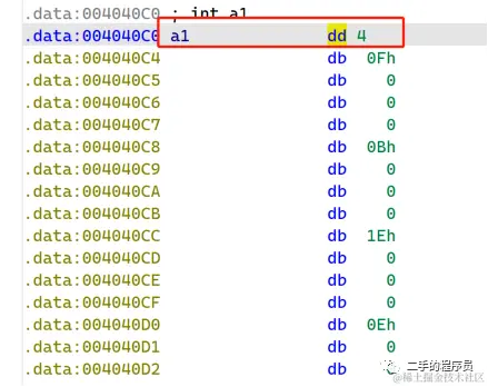 这里对 a1 有一个引用,它是一个全局数组,其作用我们上面已经分析过了,是一个索引乱序表。它的大小固定是32位(分析sub_4011F0可知),所以我们可以对其建立一个数组: