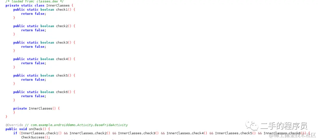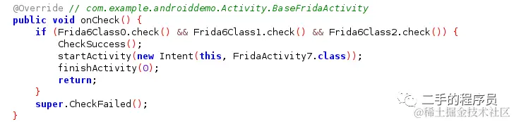 // 注意这里有优化,因为Frida6Class0 固定返回了 false,所以导致 Frida6Class1 没有被加载,所以还是一个个的写比较好