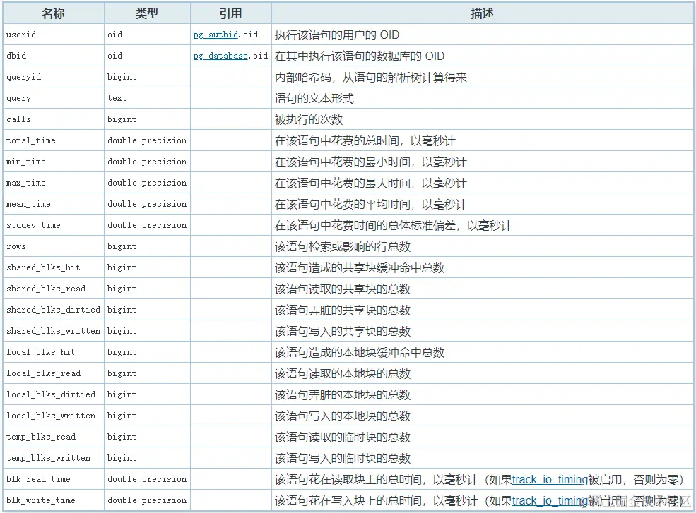 因此,对于您想要执行的任何查询,最好按 userid 过滤 pg_stat_statements 数据。