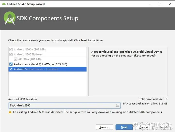 6.安装SDK 打开下载好的 Andriod studio,这里不用另外安装java环境,Android Studio自带jdk的 这里勾选即可