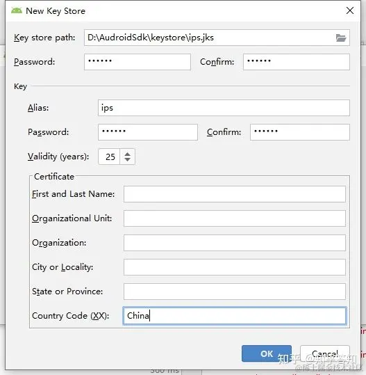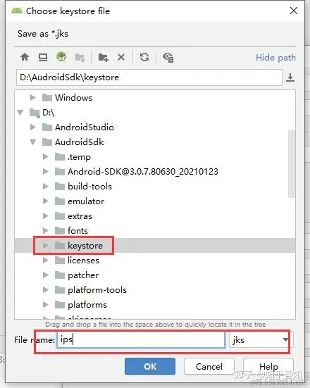 如图,第一行创建自定义jks文件,并确定路径我把它设置为ips(这种其实是不符合jks格式的,