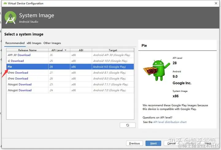 模拟器安卓系统我选的是pie,可以点击download下载或直接点下一步也会下载