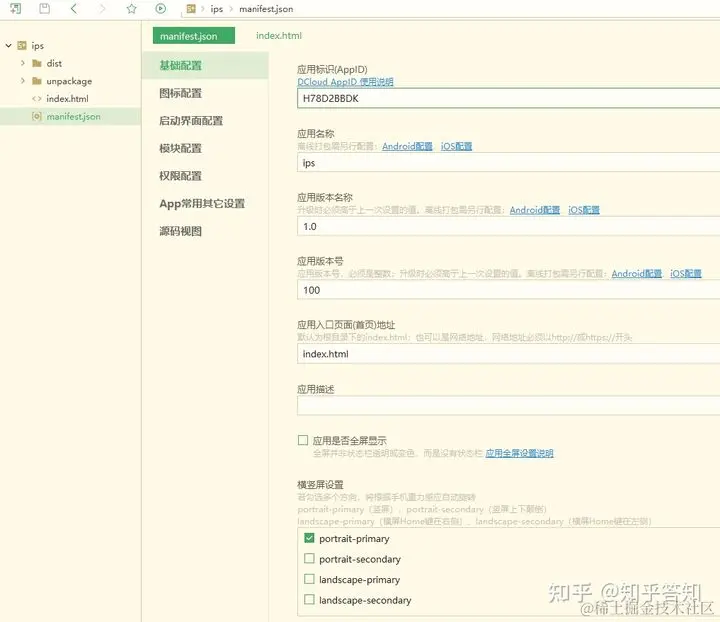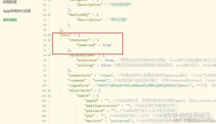 Appid Appid需要去Dcloud申请一下,注册一个账号就行,申请地址如下,免费的 dev.dcloud.net.cn/app/index?t… 应用是否全屏 这里的全屏是类似玩王者荣耀那样,直接占据整个屏幕,电源时间状态栏都没有的那种,这里我不勾选, 接下来配置沉浸式体验,就是顶部时间电源状态栏弄成透明的那种,看起来会比较舒服 图标配置 图标配置可以自动生成,也可以先不生成,后面我们可以用IDE创建自定义图标
