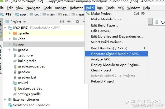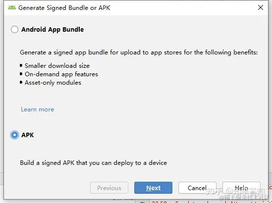 当然如果不顺利的话,可以参考下面的问答,或给博主留言 12. 编译生成 apk 在菜单栏中选择Build,点击Generate Signed Bundle /APK...项,进入打包页面。
