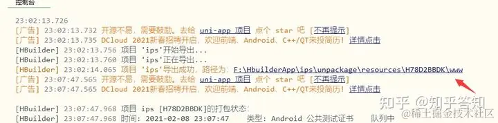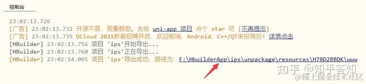 控制台会输出打包后资源的目录,后续的步骤会用到,这里先放着