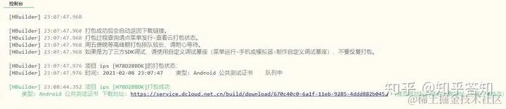 然后代码会上传到云进行打包,等待一会会跳出下载App地址