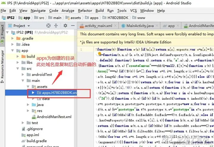 - 在 app/src/main/assets 目录下创建 apps 目录,把第5步打包的离线资源放入底下