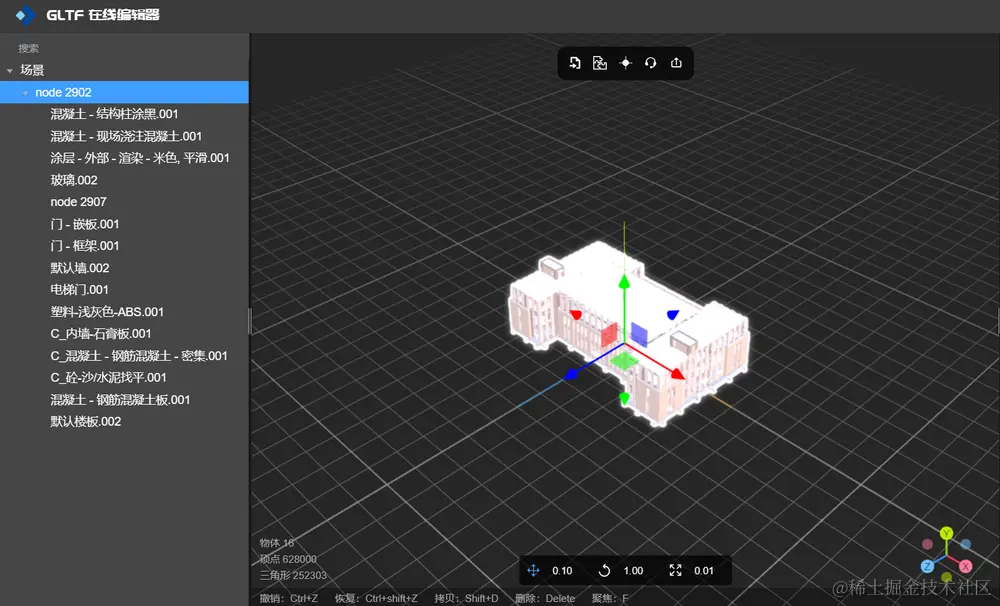 除了以上功能之外,为了提升用户体验,方便编辑模型,GLTF编辑器 还提供了撤销、恢复、拷贝模型、删除模型和聚焦等快捷功能。