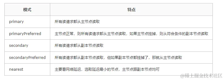 1、Replica Set 副本集模式:一个 Primary 节点用于写入数据,其它的 Secondary 节点用于查询数据,适合读写少的场景,是目前较为主流的架构方式,Primary 节点挂了,会自动从 Secondary 节点选出新的 Primary 节点,提供数据写入操作;