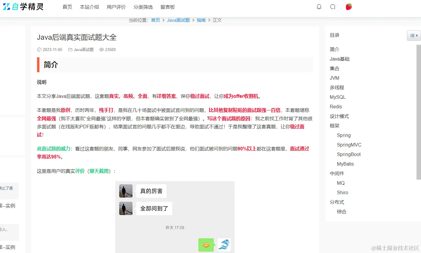 自学精灵的面试题是真实、靠谱的题目。它的特点是: