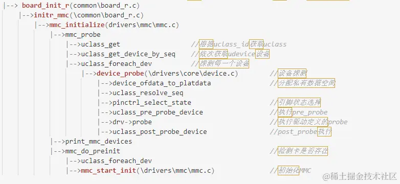 回到上文的驱动流程图,看到mmc_do_preinit这个函数了嘛?里面调用了ret = uclass_get(UCLASS_MMC, &uc);,该函数才是真正的将uclass与uclass_driver绑定。