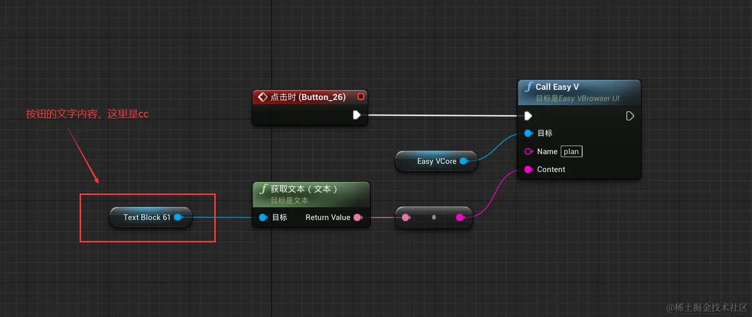 UE 给 EasyV 发消息,一般是为了给 EasyV 传递数据,或者让 EasyV 的某个组件做出一些动作,这里就需要用到两个功能了,它们分别是 EasyV 组件的 "回调" 功能和 "自定义事件" 功能。