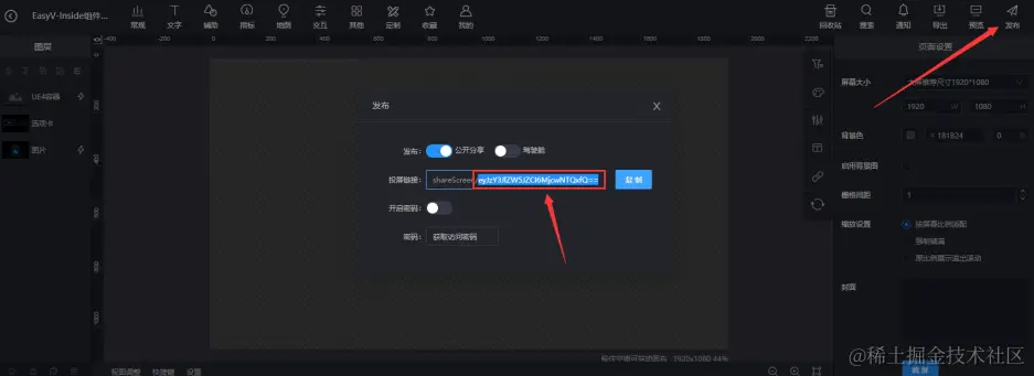 - ScreenID填入发布的EasyV连接 shareScreen/ 后面的值