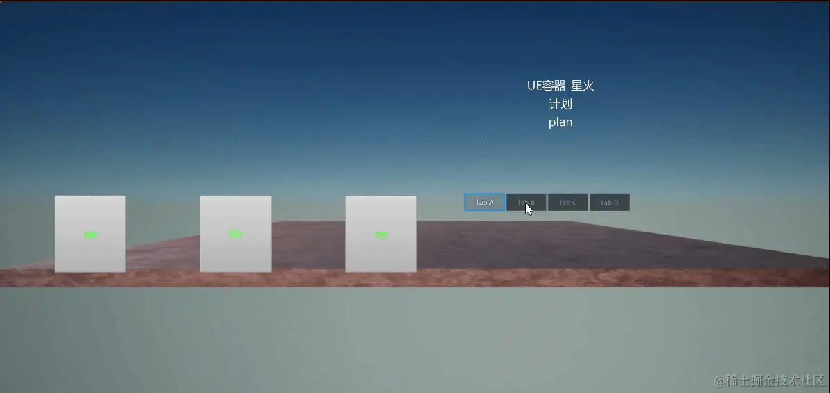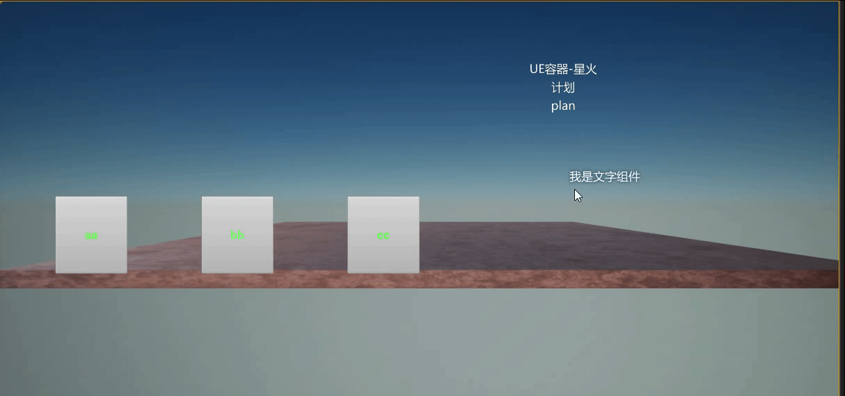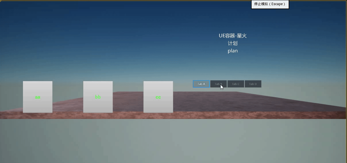 UE端的设置不变,运行后的结果如下所示。可以看到,只有在点击方块 cc 时,图片组件才会进行显隐切换。